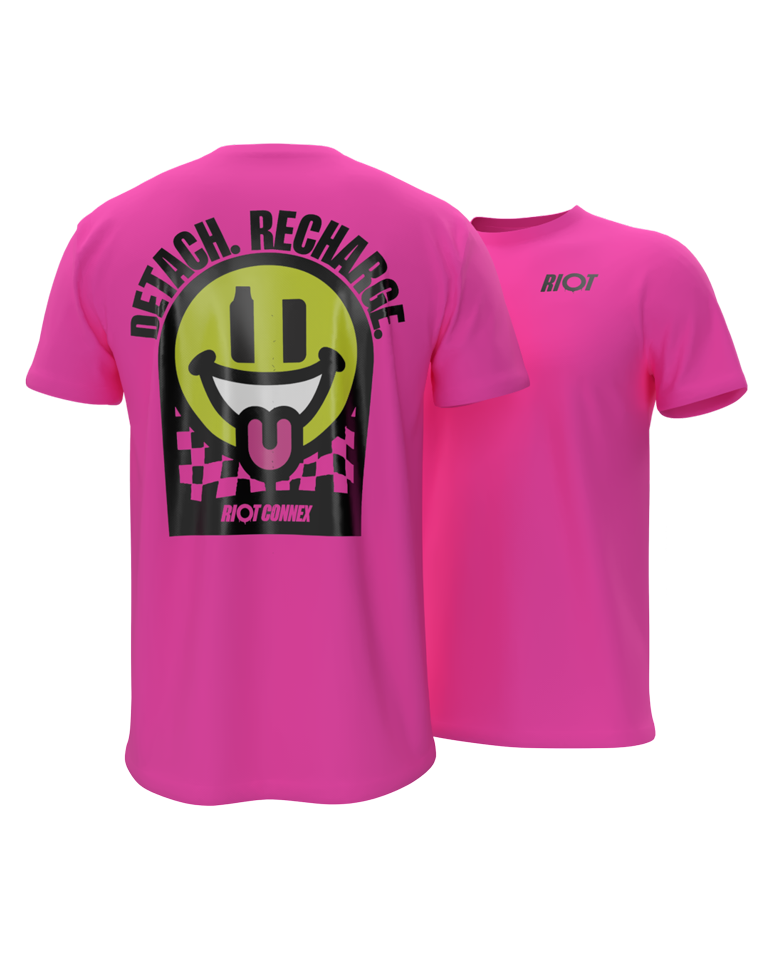 A statement in neon pink, featuring our signature Connex smiley on both sides, with 'Detach, Recharge, Connex' as your mantra.