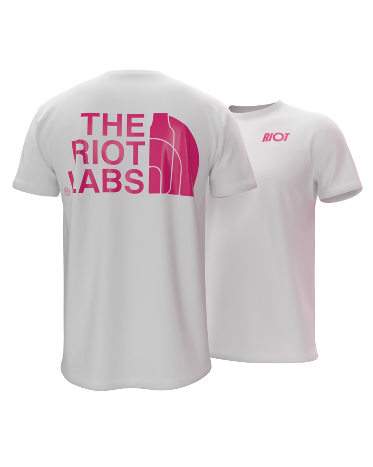 Your new essential. The Riot Labs tee keeps it clean and sharp with a white canvas and a pink Riot Labs graphic.